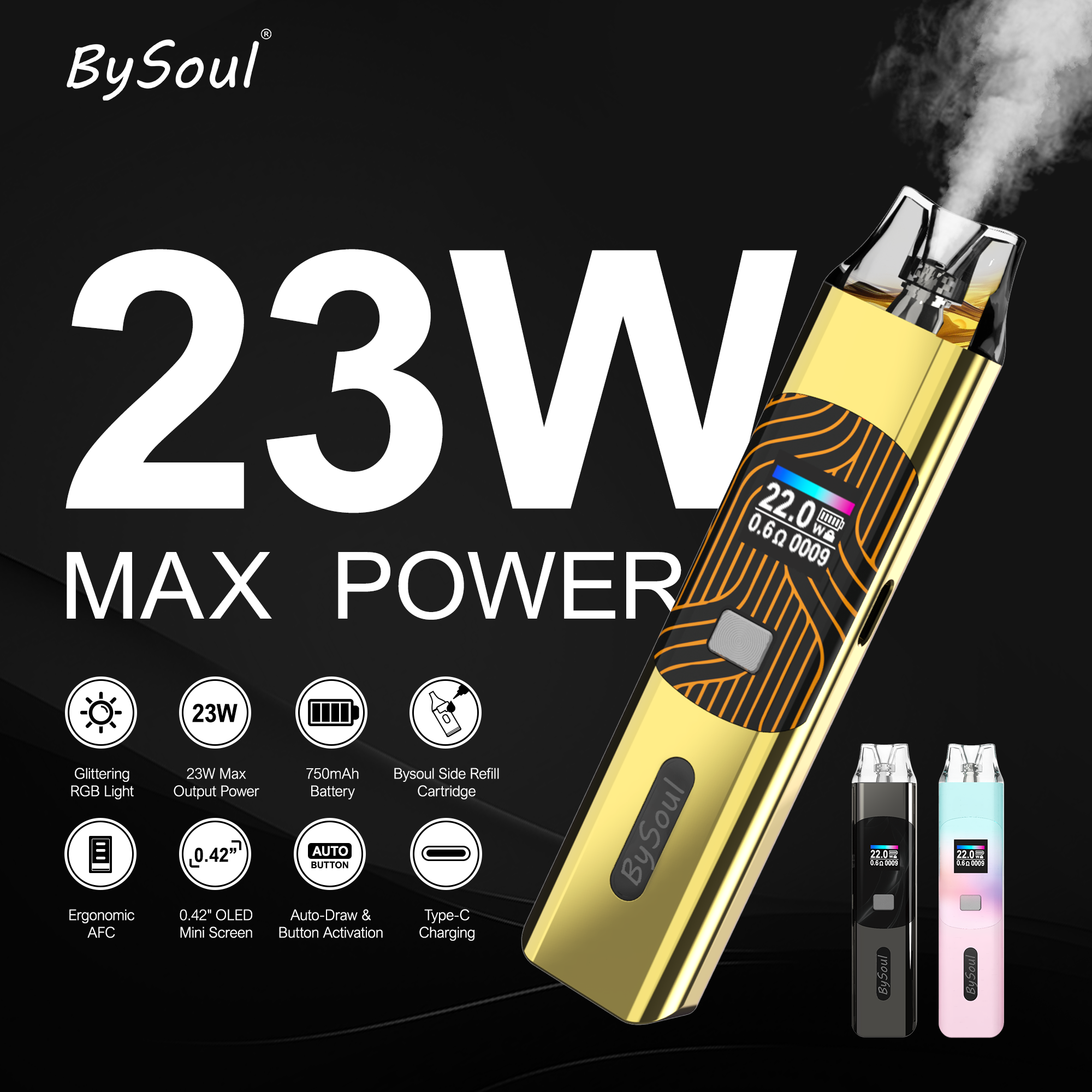 Ceramic coil heating, Smooth and dense vapor.