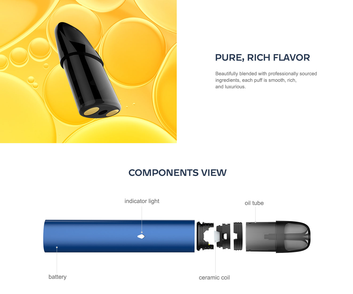 -Ceramic coil heating, Smooth and dense vapor.